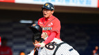 [OSEN=사직, 민경훈 기자] 8일 오후 부산 사직구장에서 ‘2013 한국야쿠르트 세븐 프로야구’ 롯데 자이언츠와 SK 와이번스의 연습경기가 열렸다. 8회초 2사 주자 1,2루 SK 박승욱의 1타점 적시타때 2루 주자 김재현이 홈으로 몸을 날