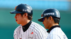 [OSEN=사직, 민경훈 기자] 8일 오후 부산 사직구장에서 ‘2013 한국야쿠르트 세븐 프로야구’ 롯데 자이언츠와 SK 와이번스의 연습경기가 열렸다. 6회 롯데 김시진 감독이 덕아웃에서 공필성 코치와 얘기를 나누고 있다. 롯데 자이