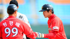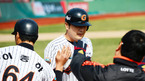 [OSEN=사직, 민경훈 기자] 8일 오후 부산 사직구장에서 ‘2013 한국야쿠르트 세븐 프로야구’ 롯데 자이언츠와 SK 와이번스의 연습경기가 열렸다. 3회말 1사 주자 없는 상황에서 롯데 문규현이 솔로홈런을 날린 후 덕아웃에서 동료
