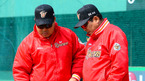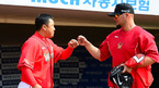 [OSEN=사직, 민경훈 기자] 8일 오후 부산 사직구장에서 ‘2013 한국야쿠르트 세븐 프로야구’ 롯데 자이언츠와 SK 와이번스의 연습경기가 열렸다. 경기 전 SK 이만수 감독이 이광근 수석 코치와 얘기를 나누고 있다. 롯데 자이언츠