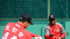 [OSEN=사직, 민경훈 기자] 8일 오후 부산 사직구장에서 ‘2013 한국야쿠르트 세븐 프로야구’ 롯데 자이언츠와 SK 와이번스의 연습경기가 열렸다. 경기 전 SK 맥스 배너블 타격 코치가 SK 조인성에게 배팅볼을 던져주고 있다. 롯데