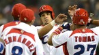 [OSEN=도쿄(일본), 이대선 기자] 9일 오후 일본 도쿄돔에서 열린 '2013 월드베이스볼클래식(WBC)' 2라운드 1조 대만과 쿠바의 경기, 6회말 1사 2루 쿠바 아브레우가 투런 홈런을 치고 홈에서 동료들과 환호하고 있다. 대만은 8일 일본과