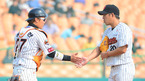 [OSEN=사직,박준형 기자] 9일 부산 사직구장에서 열린 '2013 한국야쿠르트 세븐 프로야구' 롯데 자이언츠와 SK 와이번스의 시범경기 , 5회초 2사 롯데 김승회 선발투수가 교체되며 용덕한 포수와 하이파이브를 하고 있다. 김승회는
