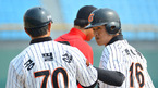 [OSEN=사직,박준형 기자] 9일 부산 사직구장에서 열린 '2013 한국야쿠르트 세븐 프로야구' 롯데 자이언츠와 SK 와이번스의 시범경기 , 3회말 1사 1루 롯데 박기혁이 안타를 날린후 공필성 코치와 하이파이브를 하고 있다 이날 경기