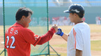 [OSEN=사직,박준형 기자] 9일 부산 사직구장에서 열리는 '2013 한국야쿠르트 세븐 프로야구' 롯데 자이언츠와 SK 와이번스의 시범경기 , 경기에 앞서 SK 이만수 감독이 손아섭과 하이파이브를 하고 있다 한편 비룡 군단 SK가 화끈한