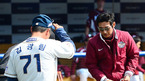 [OSEN=창원, 민경훈 기자] 9일 오후 경상남도 창원 마산야구장 ‘2013 한국야쿠르트 세븐 프로야구’ NC 다이노스와 넥센 히어로즈의 시범경기 개막전이 열렸다. 경기 전 넥센 나이트가 덕아웃에 앉아서 그라운드를 바라보고 있다