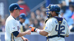 [OSEN=창원, 민경훈 기자] 9일 오후 경상남도 창원 마산야구장 ‘2013 한국야쿠르트 세븐 프로야구’ NC 다이노스와 넥센 히어로즈의 시범경기 개막전이 열렸다. 1회초를 막아낸 NC 선발 아담과 김태군 포수가 하이파이브를 하고 있