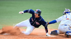 [OSEN=대구, 민경훈 기자] 12일 대구 시민운동장에서 ‘2013 한국야쿠르트 세븐 프로야구’ 삼성 라이온즈와 두산 베어스가 시범경기를 가졌다. 8회초 2사 주자 3루 두산 민병헌이 2루수 왼쪽 1타점 적시타를 날린 뒤 2루수 실책으