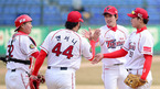 [OSEN=광주 ,백승철 기자] 12일 오후 광주구장에서 열린 '2013 한국야쿠르트 세븐 프로야구' KIA 타이거즈와 SK 와이번스의 시범경기 종료 후 KIA 선수들이 하이파이브를 하고 있다. 마운드와 타선의 조화를 과시한 KIA가 SK를 꺾고 시