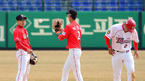 [OSEN=광주 ,백승철 기자] 12일 오후 광주구장에서 열린 '2013 한국야쿠르트 세븐 프로야구' KIA 타이거즈와 SK 와이번스의 시범경기 3회초 무사 2,3루 박승욱의 내야땅볼에 홈을 밟은 박진만이 덕아웃에서 동료들과 하이파이브를 하