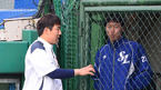 [OSEN=대구, 민경훈 기자] 12일 대구 시민운동장에서 ‘2013 한국야쿠르트 세븐 프로야구’ 삼성 라이온즈와 두산 베어스가 시범경기를 가졌다. 경기 전 두산 김현수와 삼성 차우찬이 얘기를 나누고 있다. 이 날 경기에서 삼성은