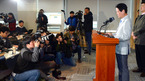 [OSEN=정송이 기자] 12일 오전 서울 신사동 프로농구연맹(KBL)에서 열린 '프로농구 승부조작 관련 대국민 사과 기자회견'에서 한선교 총재가 취재진의 질문에 답을 하고 있다. 검찰은 지난달 28일 프로농구 승부 조작에 가담한 혐의