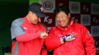 [OSEN=광주 ,백승철 기자] 12일 오후 광주구장에서 열리는 '2013 한국야쿠르트 세븐 프로야구' KIA 타이거즈와 SK 와이번스의 경기 시작 전 이만수 감독과 조인성이 화이팅을 다짐하고 있다. KIA는 지난 10일 열린 한화와의 홈경기서
