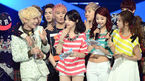 [OSEN=이대선 기자] 14일 오후 서울 상암동 CJ E&M 센터에서 진행된 'Mnet 엠카운트다운'(엠카)에서 1위 영광을 차지한 그룹 샤이니 키가 MC 걸스데이로부터 트로피를 건네 받고 있다. 이날 엠카는 샤이니,틴탑,2AM,G.NA,걸스데이,레