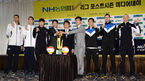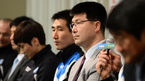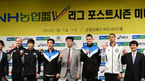 [OSEN=이대선 기자] 15일 오전 서울 청담동 호텔리베라 베르사유홀에서 열린 2012-2013 NH농협 V리그 포스트시즌 미디어데이에서 대한항공 김종민 감독대행, 삼성화재 신치용 감독, 현대캐피탈 하종화 감독을 비롯한 주장 및 외국인