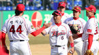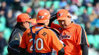 [OSEN=광주 ,백승철 기자] 16일 오후 광주구장에서 열린 '2013 한국야쿠르트 세븐 프로야구' KIA 타이거즈와 두산 베어스의 시범경기 종료 후 KIA 선수들이 하이파이브를 하고 있다. 끌려가던 순간 한 방으로 전세를 뒤집었다. KIA 타
