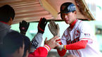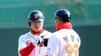[OSEN=광주 ,백승철 기자] 16일 오후 광주구장에서 열린 '2013 한국야쿠르트 세븐 프로야구' KIA 타이거즈와 두산 베어스의 시범경기 7회말 1사 1,2루 안치홍이 스리런포를 친 후 1루에서 김평호 코치와 하이파이브를 하고 있다. KIA는