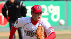 [OSEN=광주 ,백승철 기자] 16일 오후 광주구장에서 열린 '2013 한국야쿠르트 세븐 프로야구' KIA 타이거즈와 두산 베어스의 시범경기 9회초 2사 1,2루 김재호의 투수 앞 땅볼을 잡은 앤서니가 1루로 송구하고 있다. 끌려가던 순간 한