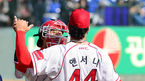 [OSEN=광주 ,백승철 기자] 16일 오후 광주구장에서 열린 '2013 한국야쿠르트 세븐 프로야구' KIA 타이거즈와 두산 베어스의 시범경기 종료 후 앤서니와 이성우가 승리를 기뻐하며 하이파이브를 하고 있다. 끌려가던 순간 한 방으로