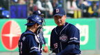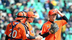 [OSEN=광주 ,백승철 기자] 16일 오후 광주구장에서 열린 '2013 한국야쿠르트 세븐 프로야구' KIA 타이거즈와 두산 베어스의 시범경기 6회말 2사 2루 김주찬을 볼넷으로 내보낸 이혜천이 최재훈과 이야기를 나누고 있다. KIA는 이날 서