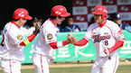 [OSEN=광주 ,백승철 기자] 16일 오후 광주구장에서 열린 '2013 한국야쿠르트 세븐 프로야구' KIA 타이거즈와 두산 베어스의 시범경기 7회말 1사 1,2루 안치홍이 스리런포를 친 후 홈에서 동료들과 하이파이브를 하고 있다. KIA는 이날