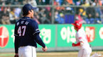 [OSEN=광주 ,백승철 기자] 16일 오후 광주구장에서 열린 '2013 한국야쿠르트 세븐 프로야구' KIA 타이거즈와 두산 베어스의 시범경기 7회말 1사 1,2루 안치홍이 스리런포를 친 후 베이스를 돌고 있는 가운데, 홍상삼이 마운드에서 외