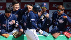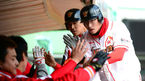 [OSEN=광주 ,백승철 기자] 16일 오후 광주구장에서 열린 '2013 한국야쿠르트 세븐 프로야구' KIA 타이거즈와 두산 베어스의 시범경기 3회초 2사 1,2루 허경민의 1타점 적시타에 홈을 밟은 최재훈이 덕아웃에서 동료들과 하이파이브를