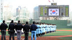 [OSEN=목동, 곽영래 기자] 16일 오전 서울 목동구장에서 열린 '2013 고교야구 주말리그' 개막전 휘문고와 성남고의 경기에 앞서 휘문고와 성남고 선수들이 국민의례를 하고 있다. 2011년 출범해 올해로 시행 3년째를 맞는 고교야구