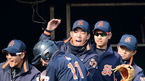 [OSEN=목동, 곽영래 기자] 16일 오전 서울 목동구장에서 열린 '2013 고교야구 주말리그' 개막전 휘문고와 성남고의 경기, 1회말 1사 1,3루 성남고 김도형의 중견수 희생플라이때 3루주자 오병권이 득점을 올린 뒤 더그아웃에서 동료