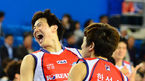 [OSEN=천안, 민경훈 기자] 대한항공이 5세트까지 가는 접전 끝에 마틴(29)의 활약에 힘입어 플레이오프 1차전서 승리를 따냈다. 김종민 감독대행이 지휘하는 대한항공은 17일 천안 유관순체육관서 열린 2012-2013 V리그 플레이오프 1