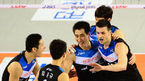 [OSEN=천안, 민경훈 기자] 17일 오후 충청남도 천안시 서북구 백석동 유관순 체육관에서 열린 2012-2013 NH농협 V리그 포스트시즌 플레이오프 1차전 현대캐피탈과 대한항공의 경기에서 1세트를 먼저 이긴 대한항공 선수들이 기쁨을