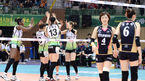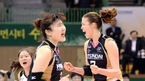 [OSEN=수원실내체, 이대선 기자] 18일 오후 경기 수원실내체육관에서 열린 '2012-2013 NH농협 V-리그' 플레이오프 2차전 현대건설과 GS칼텍스의 경기, 2세트 득점에 성공한 GS칼텍스 선수들이 환호하고 있다. GS칼텍스는 16일 구미 박정