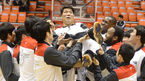 [OSEN=인천 ,백승철 기자] 19일 오후 인천 도원체육관에서 열린 '2012-2013 NH농협 V-리그' 플레이오프 2차전 대한항공과 현대캐피탈의 경기 종료 후 대한항공 선수들이 환호하고 있다. 1차전 대역전승의 기운을 받은 대한항공의 기세