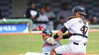 [OSEN=부산,박준형 기자]19일 오후 부산 사직구장에서 열리는 '2013 한국야쿠르트 세븐 프로야구' 롯데 자이언츠와 LG 트윈스의 시범경기, 3회초 1사 1,2루 LG 오지환의 우익수 앞 안타때 롯데 강민호 포수가 홈 쇄도하는 2루 주자 김