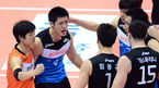 [OSEN=인천 ,백승철 기자] 19일 오후 인천 도원체육관에서 열린 '2012-2013 NH농협 V-리그' 플레이오프 2차전 대한항공과 현대캐피탈의 경기 2세트 종료 후 김학민, 최부식이 환호하고 있다. 김종민 감독대행이 지휘하는 대한항공은