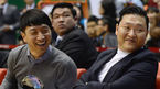 [OSEN=부산,박준형 기자] 19일 오후 부산 사직실내체육관서 열린 '2012-2013 KB국민카드 남자프로농구' 부산 KT와 전주 KCC의 경기, 이규혁과 싸이가 관전하고 있다 이날 서장훈은 KCC와의 정규리 마지막 경기를 끝으로 선수생활을 마감
