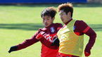 [OSEN=파주 ,백승철 기자] 20일 오후 파주 축구 국가대표팀 트레이닝 센터(NFC)에서 열린 대표팀 훈련에서 장현수-이근호가 볼다툼을 하고 있다. 최강희 감독이 이끄는 대표팀은 지난 18일, 19일 양일간 선수들의 몸 상태를 맞추고