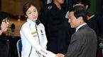 [OSEN=인천국제공항, 이대선 기자] 세계피겨선수권대회에서 우승을 차지한 '피겨 여왕' 김연아가 20일 오후 인천국제공항을 통해 귀국했다. 김연아가 관계자와 악수를 나누고 있다. 김연아는 이번 대회 쇼트 프로그램 69.97점, 프