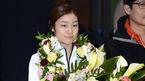 [OSEN=인천국제공항, 이대선 기자] 세계피겨선수권대회에서 우승을 차지한 '피겨 여왕' 김연아가 20일 오후 인천국제공항을 통해 귀국했다. 김연아가 관계자로부터 꽃다발을 건네 받고 있다. 김연아는 이번 대회 쇼트 프로그램 69