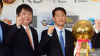 [OSEN=백승철 기자] 20일 오전 서울 논현동 KBL 센터에서 열린 '2012-2013 KB국민카드 프로농구' 플레이오프 미디어데이에서 유도훈, 김동광 감독이 기념촬영을 하고 있다. 올 시즌 플레이오프는 오는 22일부터 4월 23일까지 진행되며,