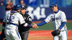 [OSEN=목동 ,백승철 기자] 21일 오후 서울 목동구장에서 열린 '2013 한국야쿠르트 세븐 프로야구' 넥센 히어로즈와 두산 베어스의 시범경기 종료 후 손승락과 박동원이 하이파이브를 하고 있다. 넥센 히어로즈가 유한준, 이택근 등