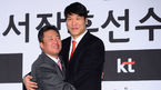 [OSEN=민경훈 기자] 21일 오전 서울 종로구 KT 광화문 올레 스퀘어 1층 드림홀에서 열린 농구선수 서장훈의 은퇴 기자회견에서 서장훈이 KT 전창진 감독과 포옹을 하고 있다. '2012-2013 KB국민카드 남자프로농구' 정규리그를 마치고