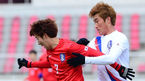 [OSEN=고양 ,백승철 기자] 22일 오후 고양종합운동장에서 열린 축구 대표팀 자체 평가전에서 손흥민과 장현수가 볼다툼을 하고 있다. 최강희 감독이 이끄는 대표팀은 오는 26일 열리는 카타르와 2014 브라질 월드컵 아시아지역 최