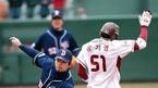 [OSEN=목동, 곽영래 기자] 22일 오후 서울 목동구장에서 열린 '2013 한국야쿠르트 세븐 프로야구' 넥센 히어로즈와 두산 베어스의 시범경기, 6회말 1사 두산 최준석이 넥센 장기영의 번트타구 잡아 오재원에게 송구한 뒤 1루를 바라