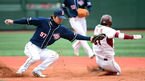[OSEN=목동, 곽영래 기자] 22일 오후 서울 목동구장에서 열린 '2013 한국야쿠르트 세븐 프로야구' 넥센 히어로즈와 두산 베어스의 시범경기, 6회말 2사 1루 넥센 장기영이 두산 오재원의 태그를 피해 2루 도루를 성공하고 있다. 넥센