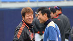 [OSEN=목동, 곽영래 기자] 22일 오전 서울 목동구장에서 열리는 '2013 한국야쿠르트 세븐 프로야구' 넥센 히어로즈와 두산 베어스의 시범경기전 두산 김동주가 박세혁과 장난을 치고 있다. 넥센은 지난 21일 열린 두산과의 경기에서