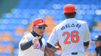[OSEN=대전,박준형 기자] 23일 오후 대전구장에서 열린 '2013 한국야쿠르트 세븐 프로야구' 한화 이글스와 롯데 자이언츠의 시범경기, 1회말 이닝 종료 후 한화 선발투수 바티스타와 김태균이 하이파이브를 하며 더그아웃으로 들