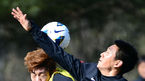 [OSEN=파주, 곽영래 기자] 23일 오전 경기 파주 축구 국가대표팀 트레이닝 센터(NFC)에서 열린 대표팀이 훈련을 가졌다. 하대성과 오범석이 공중볼 다툼을 벌이고 있다. 오는 26일 열리는 카타르와 2014 브라질 월드컵 아시아지역 최