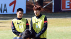 [OSEN=파주, 곽영래 기자] 23일 오전 경기 파주 축구 국가대표팀 트레이닝 센터(NFC)에서 열린 대표팀이 훈련을 가졌다. 훈련전 이근호와 이동국이 러닝을 하며 이야기를 나누고 있다. 오는 26일 열리는 카타르와 2014 브라질 월드컵