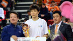 [OSEN=인천, 곽영래 기자] 23일 오후 인천삼산월드체육관에서 열린 'KB 국민카드 2012-2013 프로농구' 6강 플레이오프 1차전 인천 전자랜드와 서울 삼성의 경기에서 KBL 한선교 총재가 전잘랜드 강혁에게 정규리그 3위 트로피를 건네